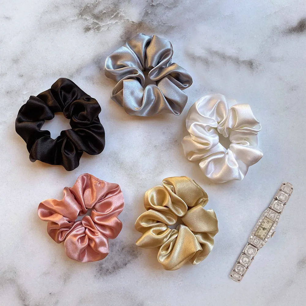 طقم ربطات شعر من حرير التوت الطبيعي 100٪ بوزن 22 موميه – 3 قطع